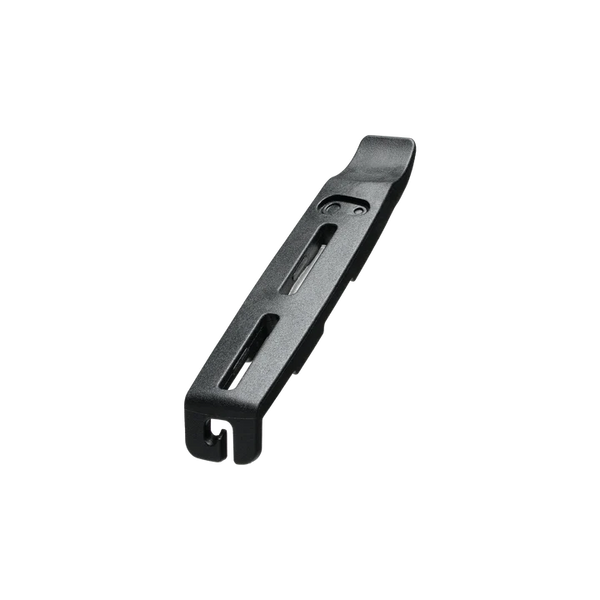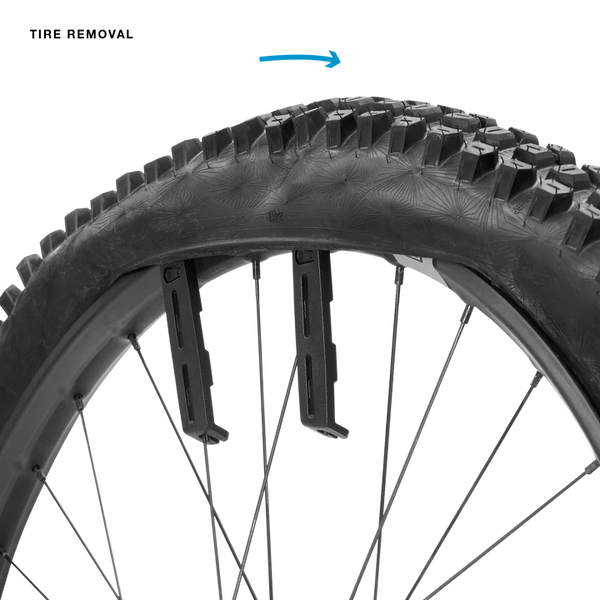 El kit de palancas deslizantes para neumáticos contiene dos palancas compactas fabricadas con material de alta resistencia, fáciles de guardar en la bicicleta o en una mochila, e incluyen ganchos para radios que las mantienen en su lugar durante el desmontaje. Los deslizadores de talón incluidos facilitan la instalación de neumáticos difíciles y actúan como un par de manos extra, manteniendo el talón en su lugar mientras se coloca el neumático en la llanta. Las puntas redondeadas de las palancas se deslizan fácilmente por debajo de los talones apretados y evitan dañar el fondo de llanta durante la instalación y el desmontaje.