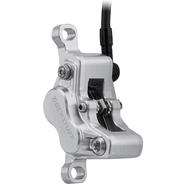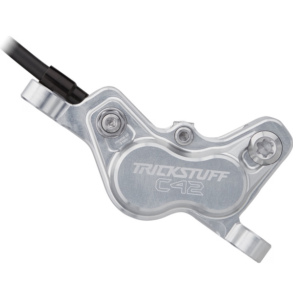Una pinza de freno de alta rigidez permite una transmisión más directa y precisa de la fuerza de frenado, lo que resulta en un punto de presión claro y firme. Las pinzas de freno Trickstuff de dos piezas difieren en su construcción y se adaptan a la aplicación específica del freno y a los requisitos de la fuerza de frenado aplicada.
